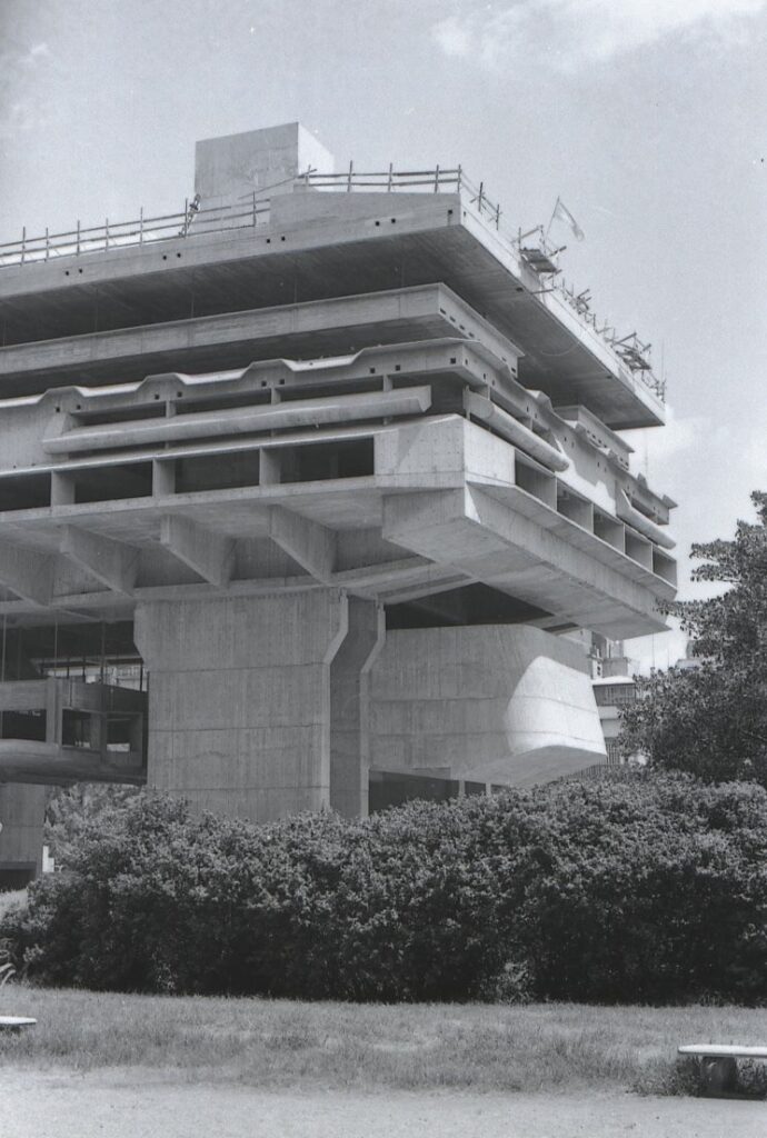 El segundo proyecto fue “Parasoles” para la Biblioteca Nacional, en el contexto de la Bienal de Arquitectura de Buenos Aires, cuya invitación proponía reflexionar en torno a habitar, construir y pensar dentro de un edificio que cobija. La elección de este edificio obedece a resolver problemas térmicos actuales derivados de la falta de finalización del diseño en la obra original.