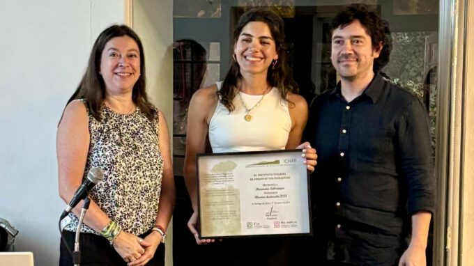 Macarena Labranque, egresada del Magíster en Arquitectura con Mención en Ciudad y Paisaje de la UDD, fue premiada por la Instituto Chileno de Arquitectos Paisajistas (ICHAP), reconocimiento que busca destacar tanto, los programas de Pregrado en Arquitectura del Paisaje, como en los distintos Magíster de Paisaje.